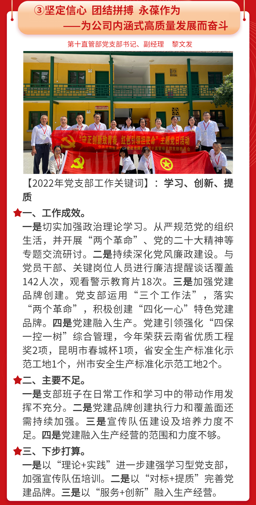 2022年度黨支部書(shū)記抓基層黨建工作述職報(bào)告摘登(三)