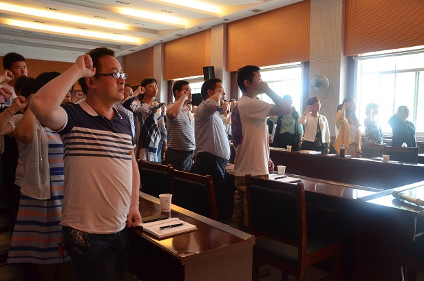 此次主題黨日經過了精心策劃,結合目前公司正在開展的機關作風建設展開,活動豐富且生動。為7月入黨的黨員送上政治生日賀卡,溫馨動人;全體黨員重溫入黨誓詞,莊嚴肅穆;“黨建知識問答”你搶我答,共同學習進步;“角色互換”表演,通過不同部門工作流程的情景再現,大家加深了對部門間溝通辦事流程的了解和理解。一系列充滿趣味的事項,讓與會人員聚精會神地投入到主題黨日活動的開展中。緊接著,彭娟圍繞 “四個意識”,重點從“八個不準”,如:工作規定、請假規則、督導檢查活動、保密制度、服務意識等方面,詳細地講解了公司新出臺的《關于進一步加強機關工作紀律的通知》要求。彭娟提出,機關部門作為公司窗口,部門人員都必須嚴格遵守機關工作紀律制度要求,認真履行工作職責,做到職責明確、各司其職、各負其責。公司機關的黨員干部要進一步強化“四個意識”,堅持做到“八個不準”,在工作和學習中起好模范帶頭作用,為公司發展營造良好的氛圍。隨后,參會黨員進行遵守機關紀律的宣誓,簽署了責任書。
