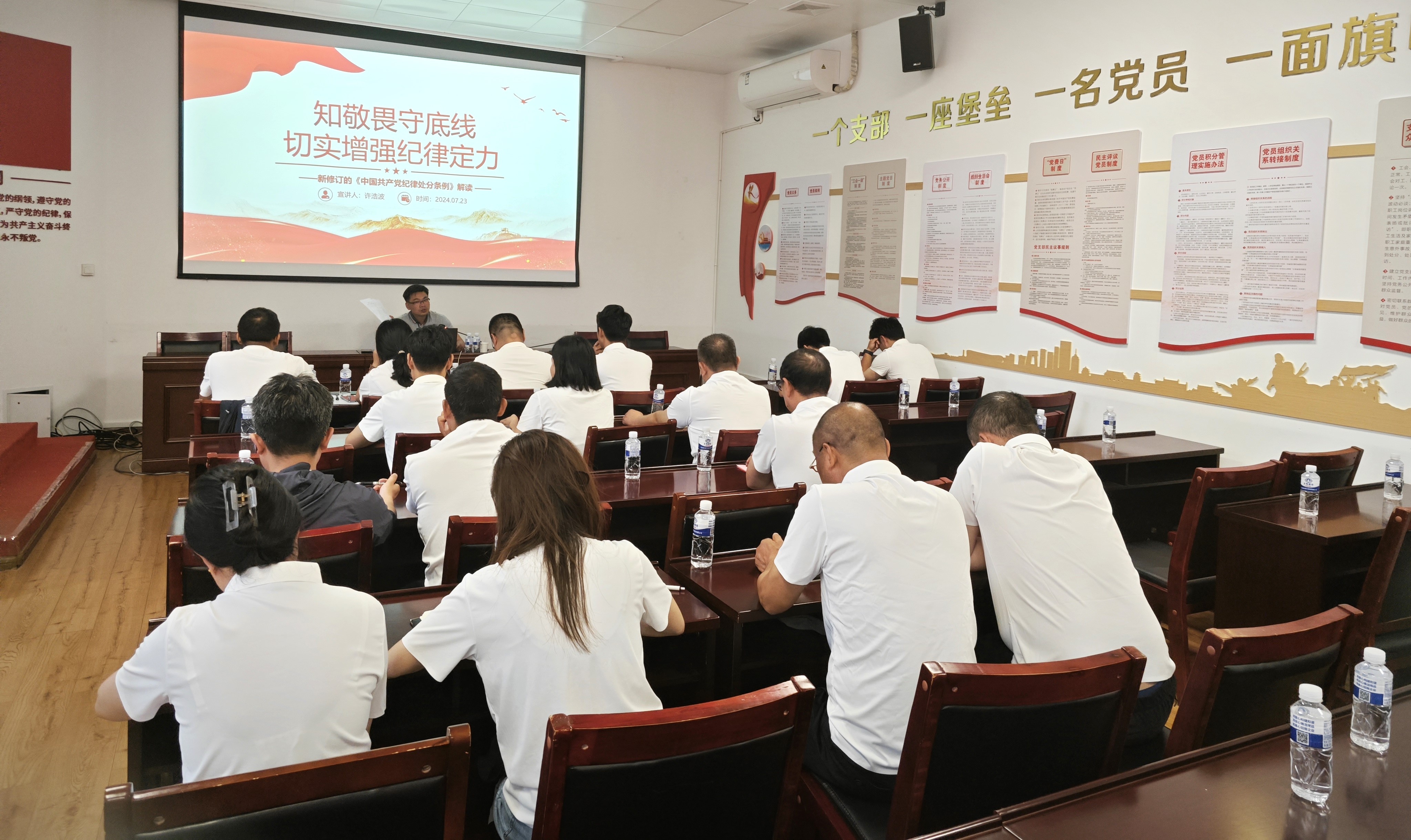 7月23日上午,公司副總經(jīng)理、總經(jīng)濟師許浩波以《知敬畏守底線切實增強紀律定力》為題,為資產(chǎn)運營管理部全體黨員干部職工共計30余人講授黨紀學習教育專題黨課。許浩波從充分認識《中國共產(chǎn)黨紀律處分條例》(以下簡稱《條例》)修訂的重大意義,深入領會《條例》修訂的精髓和要義,嚴格落實《條例》形成遵規(guī)守紀高度自覺三個方面,結合黨的...