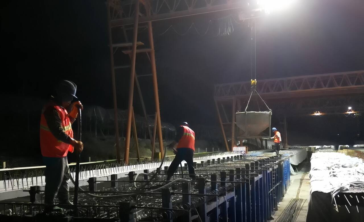 項目團隊按照“首件先行,樣板引路”的原則,以首片T梁的成功澆筑為基礎,不斷優化施工方案形成經驗樣板,從技術交底到鋼筋綁扎,從吊裝支模到混凝土澆筑,均由現場管理人員進行旁站監督,并對現場操作人員進行技術交底、質量控制交底以及安全交底,從而保證施工安全、質量可控。項目部還通過組織勞動競賽、制定施工節點任務銷項獎勵制度,激勵作業班組保質保量完成施工任務。